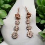 These elegant earrings feature a cascading arrangement of sparkling floral clusters, each crafted from brilliant cubic zirconia stones and set in a warm rose gold finish. The triple-drop design exudes movement and shine, making them a standout accessory for both festive occasions and evening wear. Lightweight yet eye-catching, they perfectly blend classic floral motifs with contemporary chic style for a dazzling