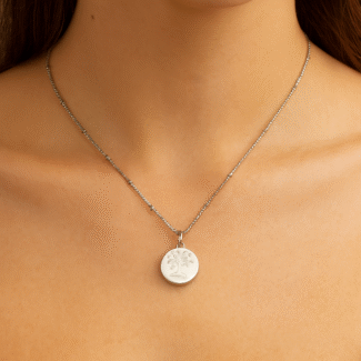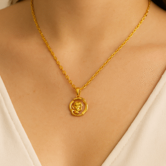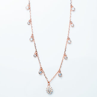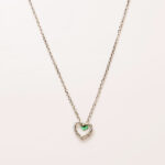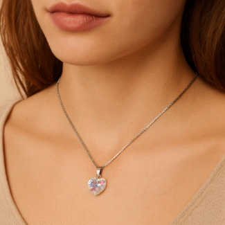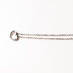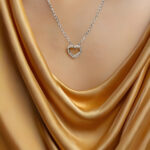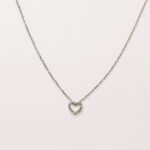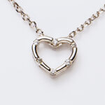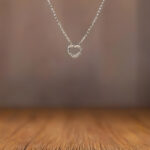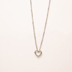 The pendant is crafted in the shape of an open heart, formed by connecting several rounded segments, each adorned with a tiny sparkling stone at the junction. The unique segmented design adds modern flair and dimension to the classic heart motif. The charm hangs from a fine chain, making it a romantic and trendy accessory for everyday wear or special occasions.